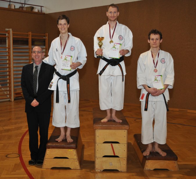 Kristof Pieber packte im Juniorenbewerb der Ehrgeiz. Er legte als Gelbgurt eine so kräftige und saubere Kata hin, die sogar die höherer Gurte in den Schatten stellte. Mit dieser tollen Leistung holte er die Goldmedaille für den ATG.